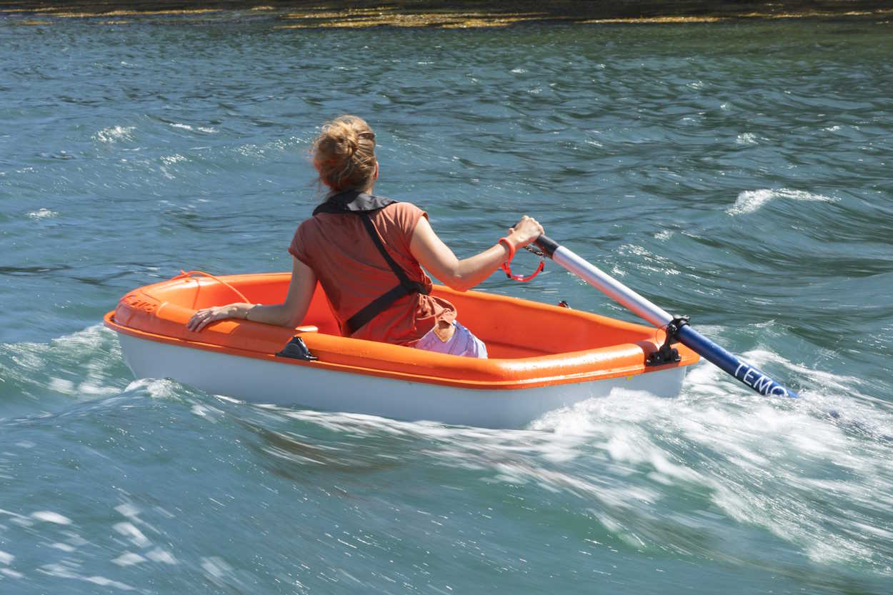 Boat tenders are the main target market for our electric sculling oar. Designed primarily for this use, this electric dinghy motor is the ideal companion for short trips. Suitable for dinghies (Houat video) up to about 2.60 m in length for 2 to 3 people carrying some equipment, it will make your life easier. Ashore, you can transport it using the carrying bag or secure it with the anti-theft handcuffs. Not bad, eh!