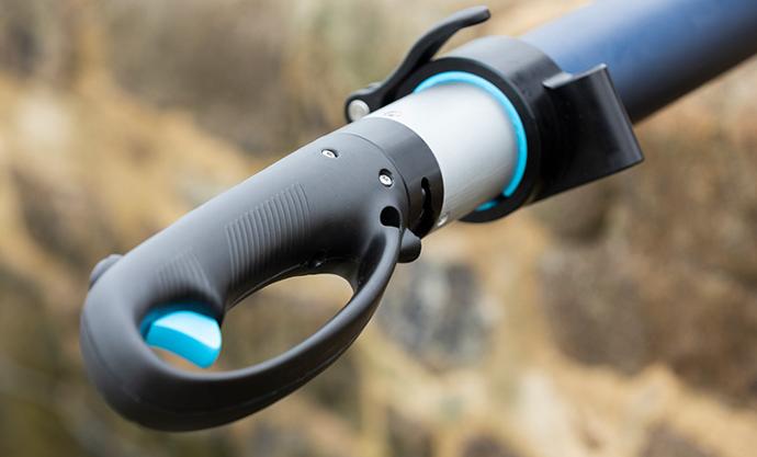 The speed of TEMO can be adjusted by squeezing the trigger. At full throttle, you will have up to 42 minutes of range, and up to 80 minutes at half speed.